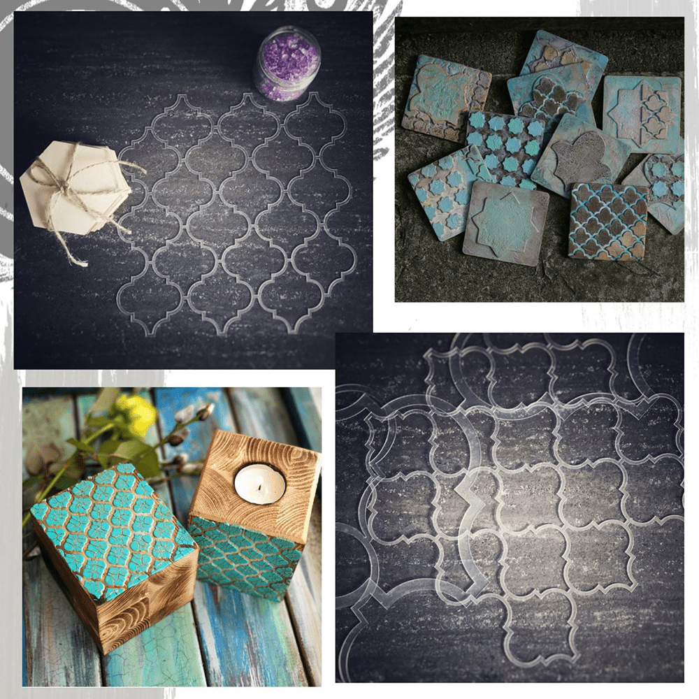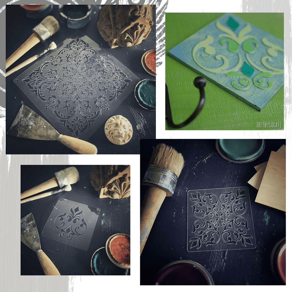 Вариантов множество. Также у нас есть трафареты для декора плитки. Их можно найти на сайте с помощью функции «Фильтровать» по размеру: выбрать малые.