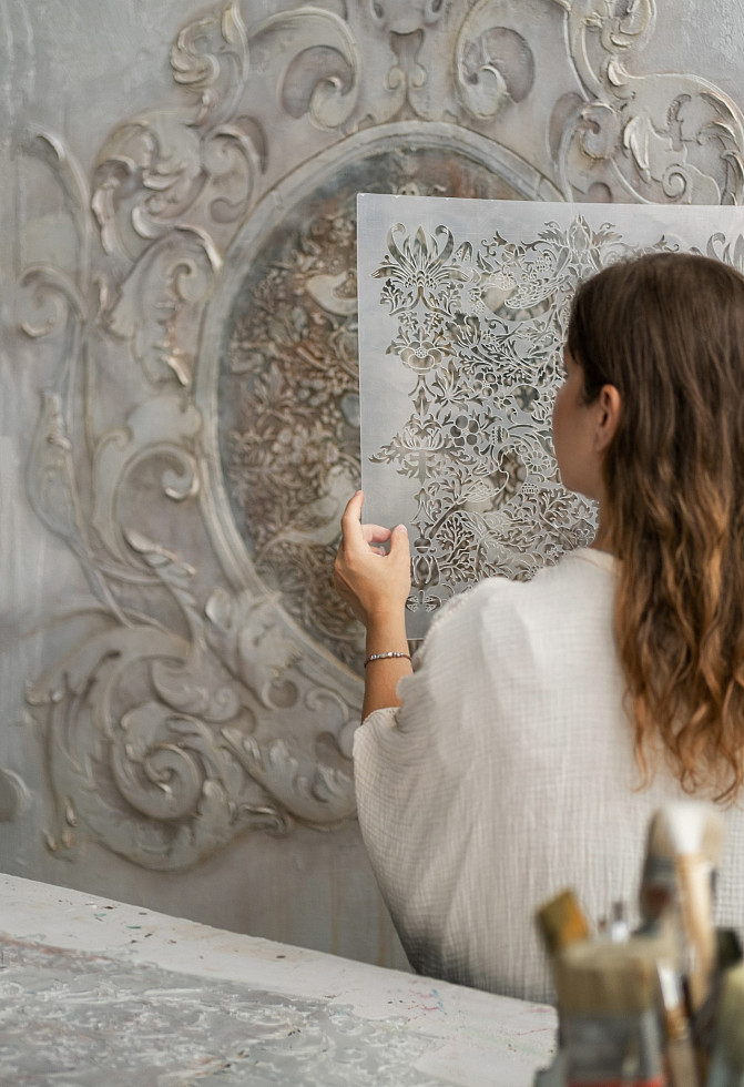 Трафареты потрясающие детальностью и четкостью линий! Понятно что созданы профессионалами своего дела. Удобны в применении и красками, и штукатурками .и пастами! Спасибо этот трафарет меня сразил просто.