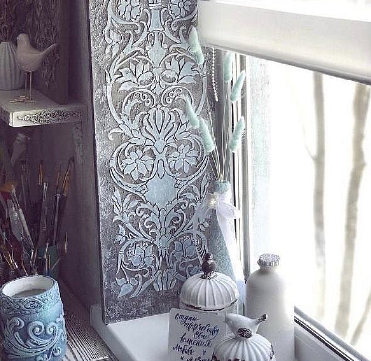 В прорези этого универсального инструмента удобно наносить краску различными способами: спонжем, круглой кистью или аэрографом. Трафарет легко вдавливается в глину, а также подходит для декоративной штукатурки. Для нанесения акриловых фактурных гелей наилучшим способом является использование шпателя, который также удобно использовать для удаления излишков краски без повреждения трафарета.