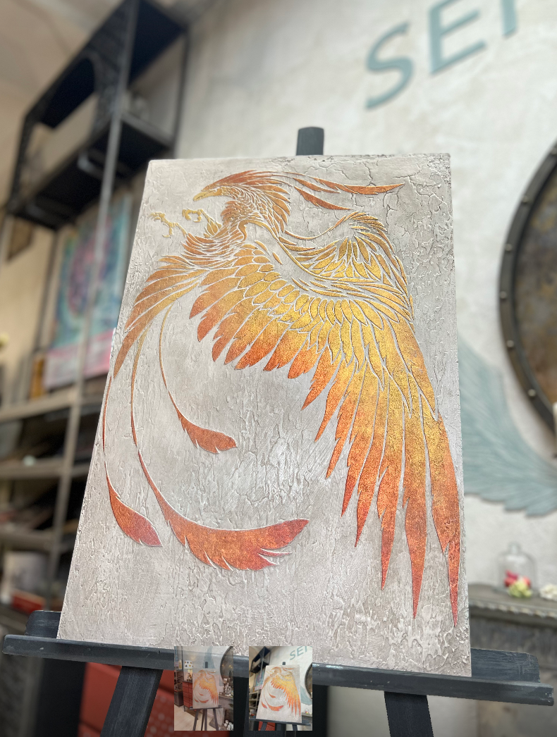 Многоразовый "Трафарет - Феникс" купить в Киров, Размер трафарета: 63.5х57, 87х78.